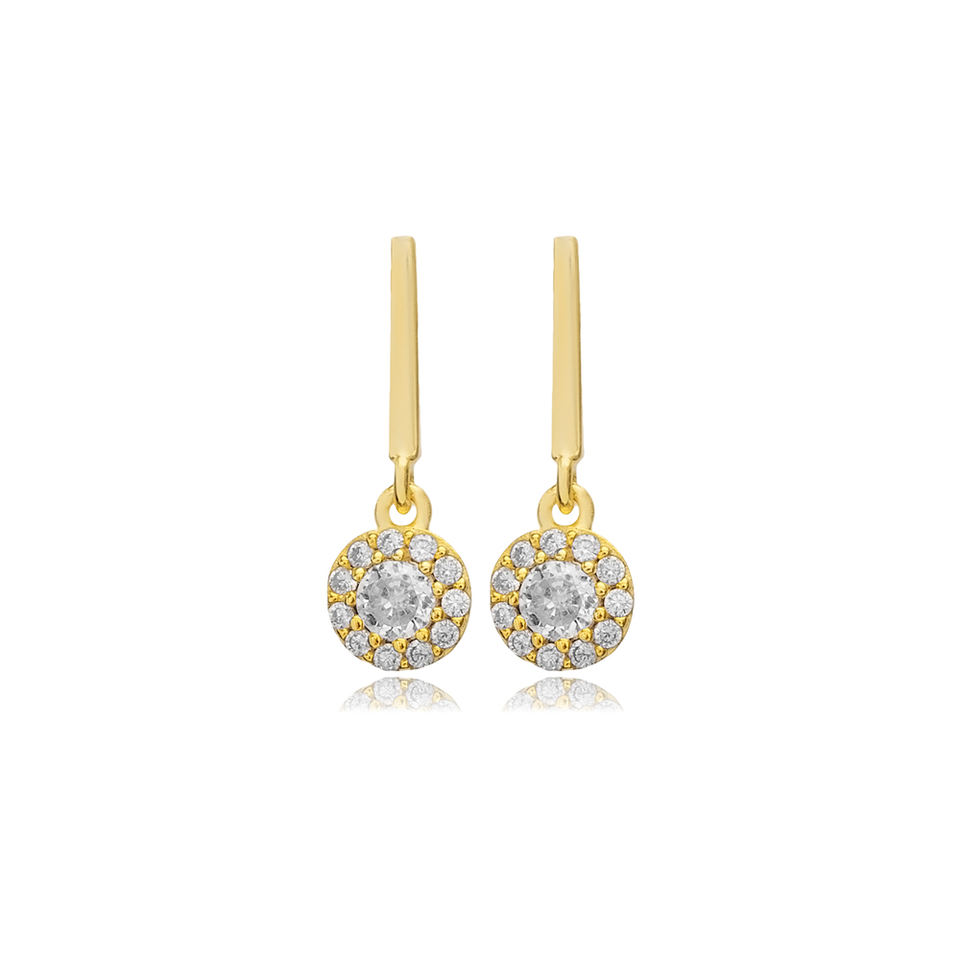 Round Charm Clear Zircon Stone Silver Bar Stud Earrings Handmade Turkish Wholesale 925 Sterling Silver Jewelry