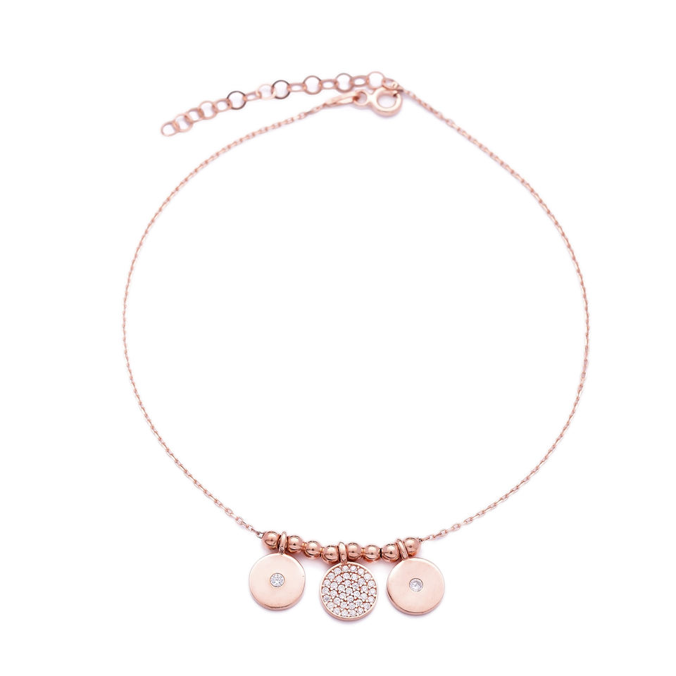 Round Charm Thin Chain Elegant Beaded Turkish Wholesale Handcrafted 925 Sterling Silver Anklet