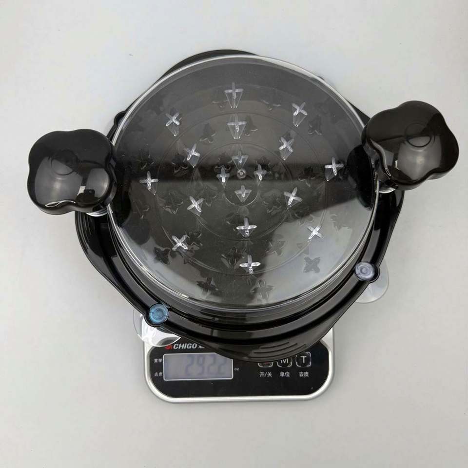 Round Chicken Bowl Twist Tool Grinder with Durable Plastic Non-Skid Base Mat and Transparent Lid Easily Cleaned