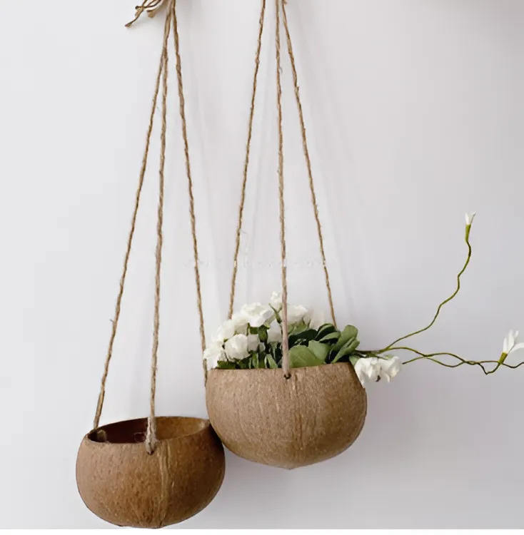 Round Coconut Shell Planter: Classic Design, Natural Garden Decor Eco-Friendly, Natural Growing VIET FARGIMEX