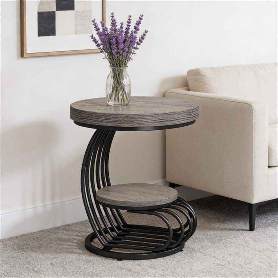 Round Coffee Table with Storage Rack for Use As a Sofa or Tea Table Side Table