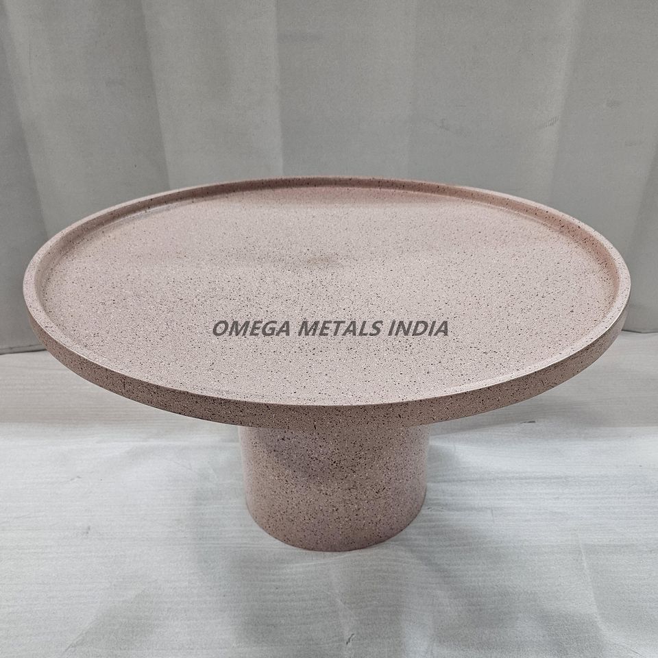 Round Coffee Table with a Soft Pink Speckled Featuring a Sturdy Metal Base Smooth Circular Tray Top for Modern Living Spaces