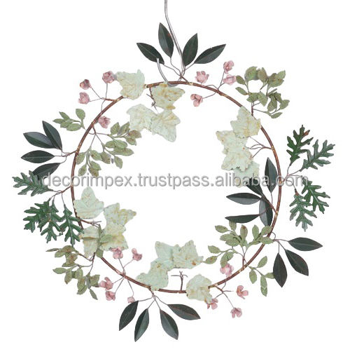 Round Colorful Frame Leaves New Year and Christmas Hanging Decoration Round Shaped Flower Wreath for Indoor and Outdoor