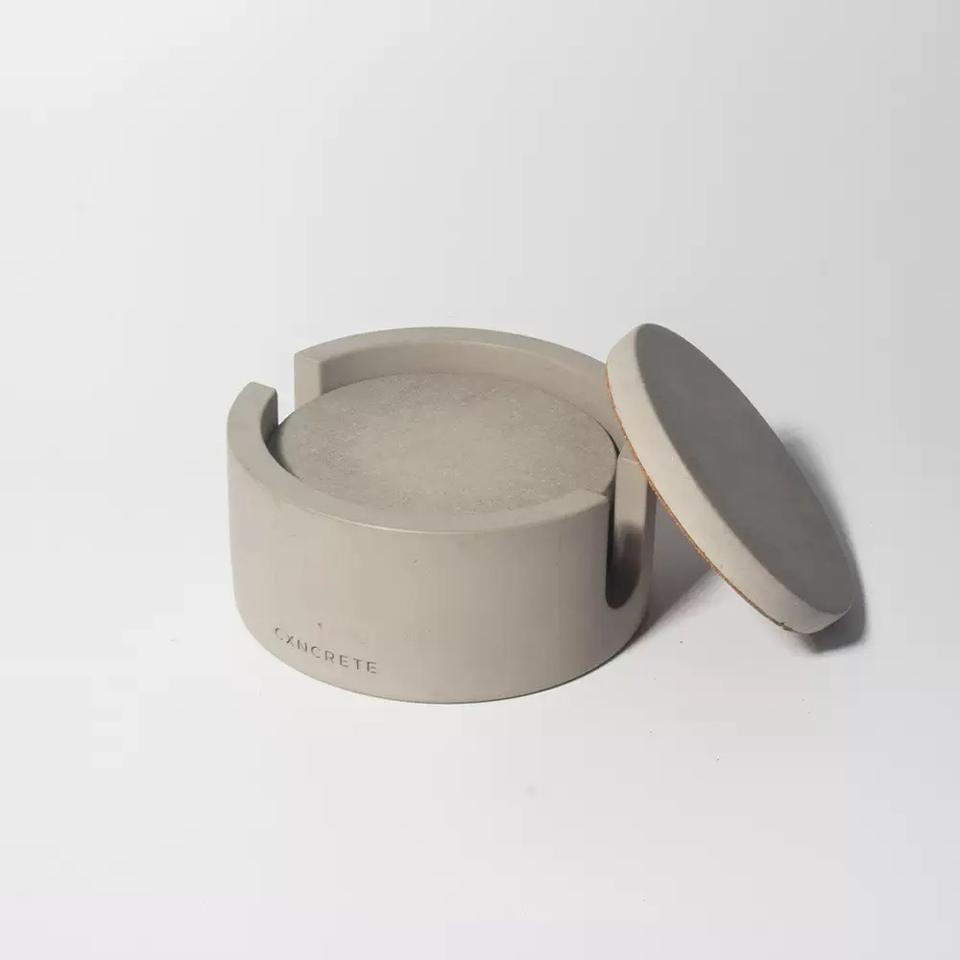 Round Concrete Coaster Set - Indoor/Outdoor Table Decor, Cement Cup Mat for Tea & Coffee