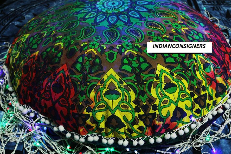 Round Cotton Pouf Floor Cushion Cover Star Mandala Elephant Multiple Colors Home Decor Handmade 32 Inch By Indian Consigners