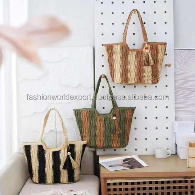 Round Crochet Sling Bag in Green Eco-Friendly Raffia Crossbody for Bohemian and Beach StyleTassel Accent and Beaded Charm