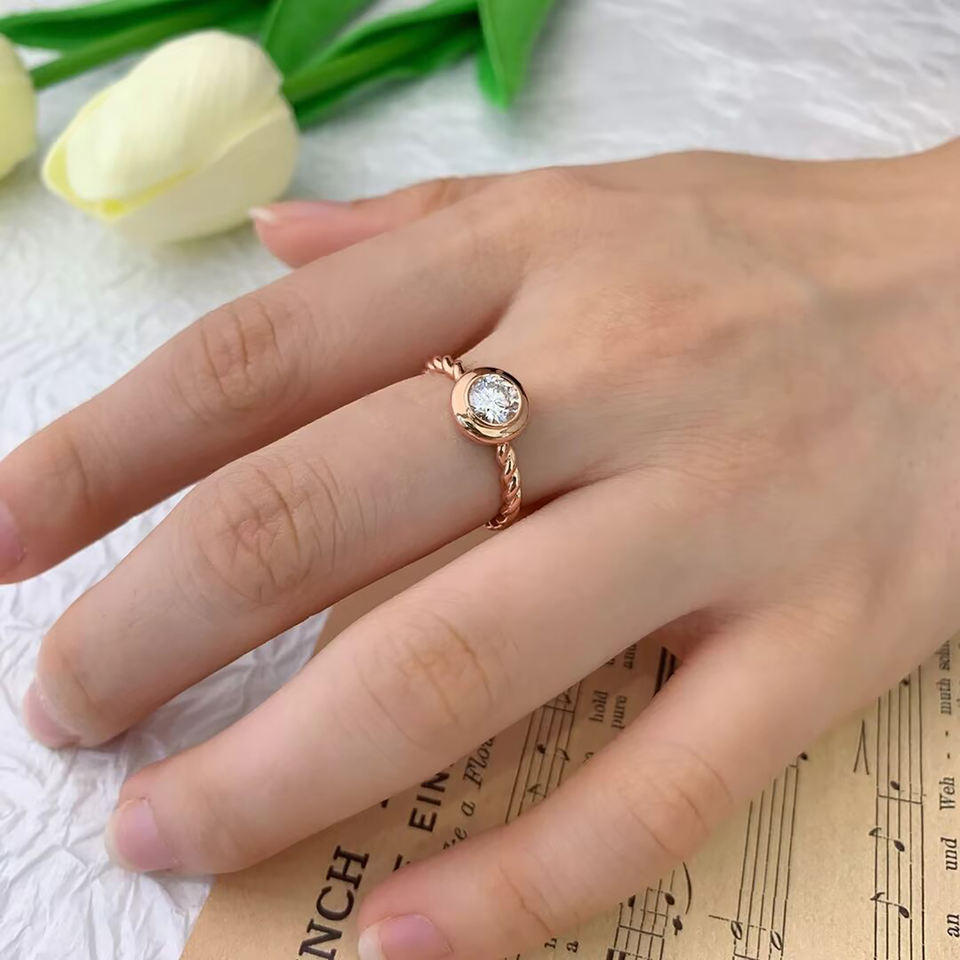 Product name:14K Gold Round Cut Bezel Set Twisted Rope Band Solitaire Ring