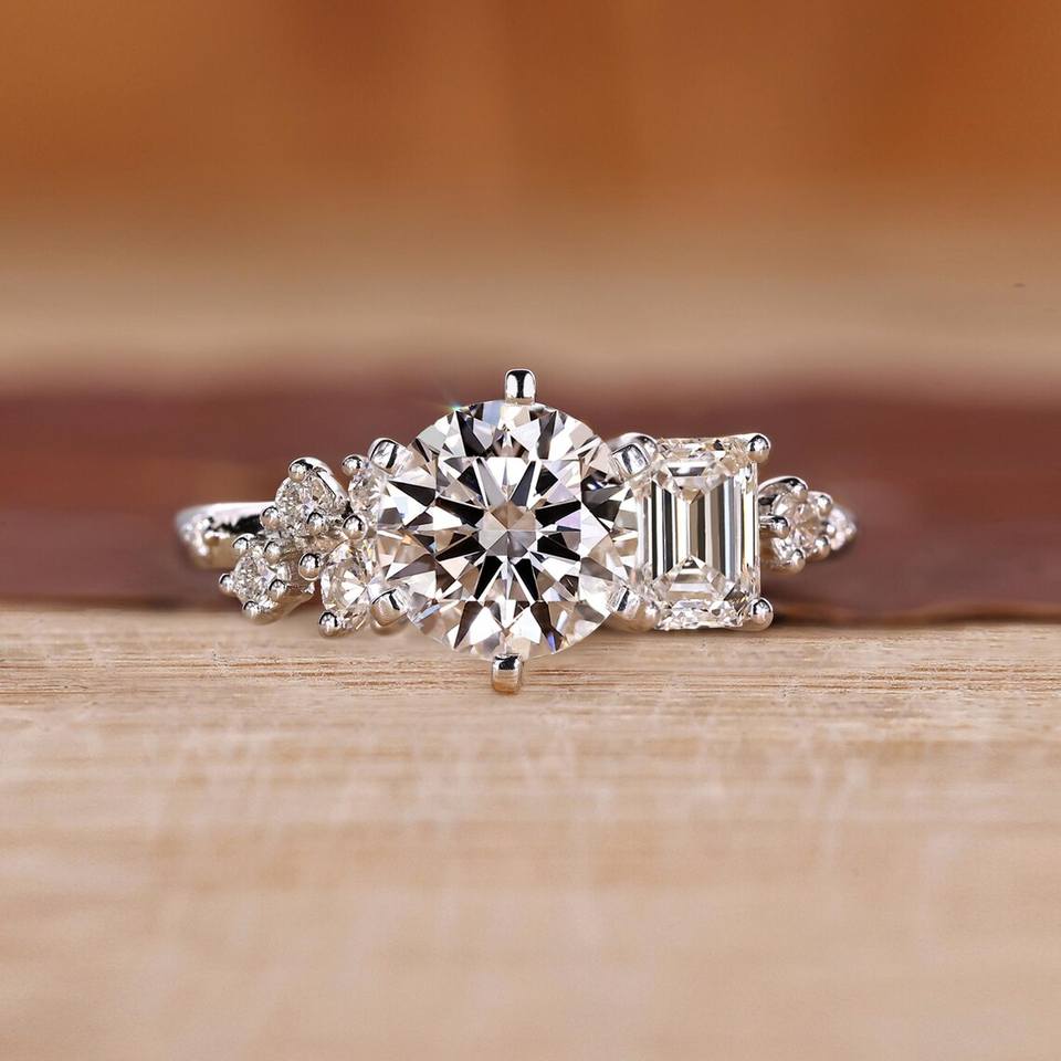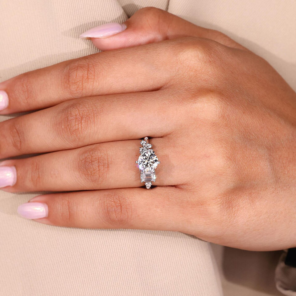 Cut Center CZ Diamond Cluster Set Engagement Ring Brilliant Emerald Side Stones Gold Plated 925 Sterling Silver Women's Ring