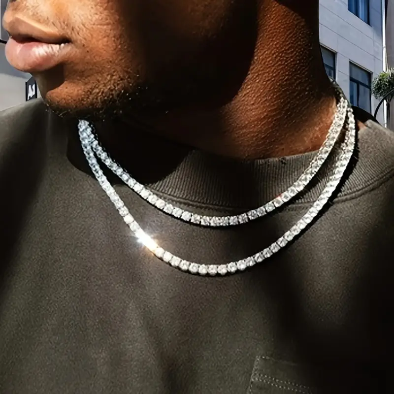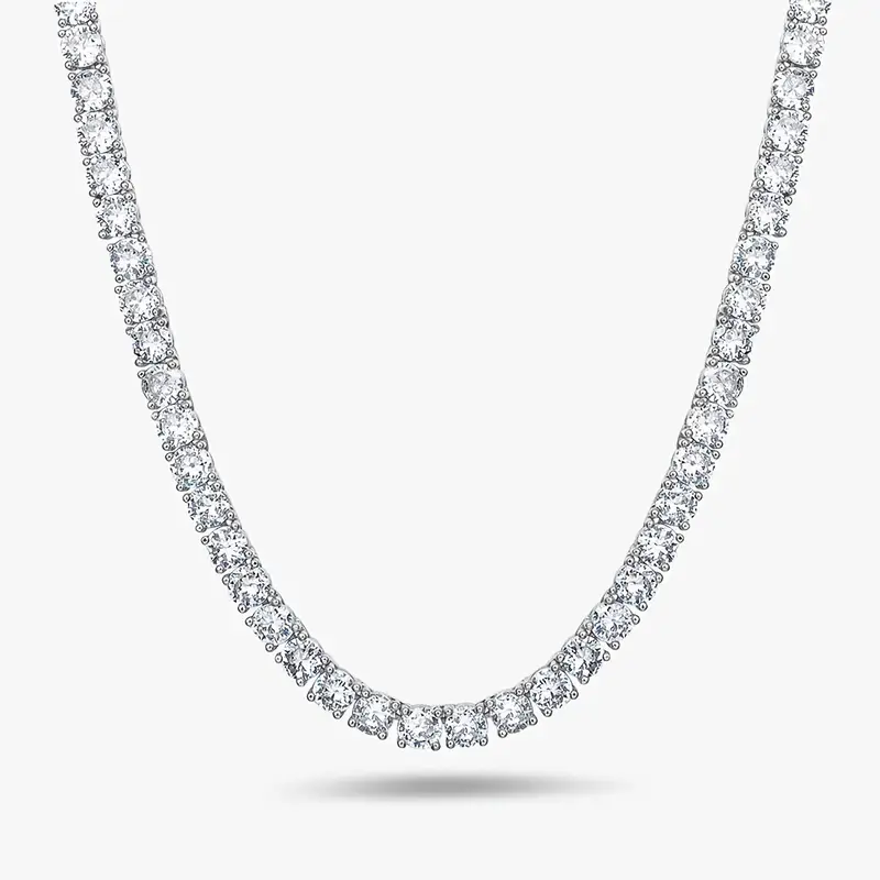 Round Cut Lab Grown Diamond Tennis Chain Necklace Hip Hop Style 925 Sterling Silver Gold Plated Charms for Men and Women