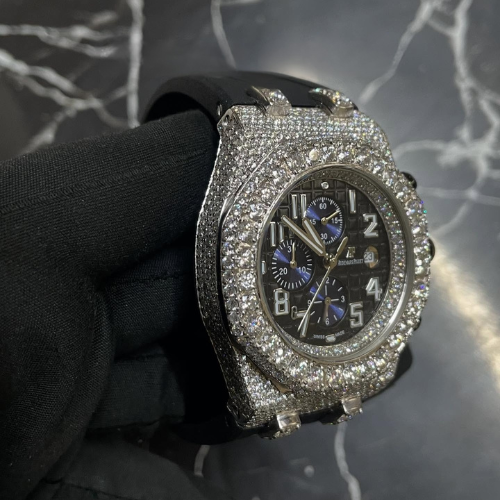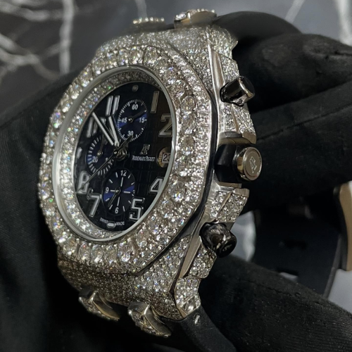 Round Cut D/VVS Lab Created Moissanite Bezel Black Dial Automatic Movement Rubber Strap Men's Hip Hop Watch