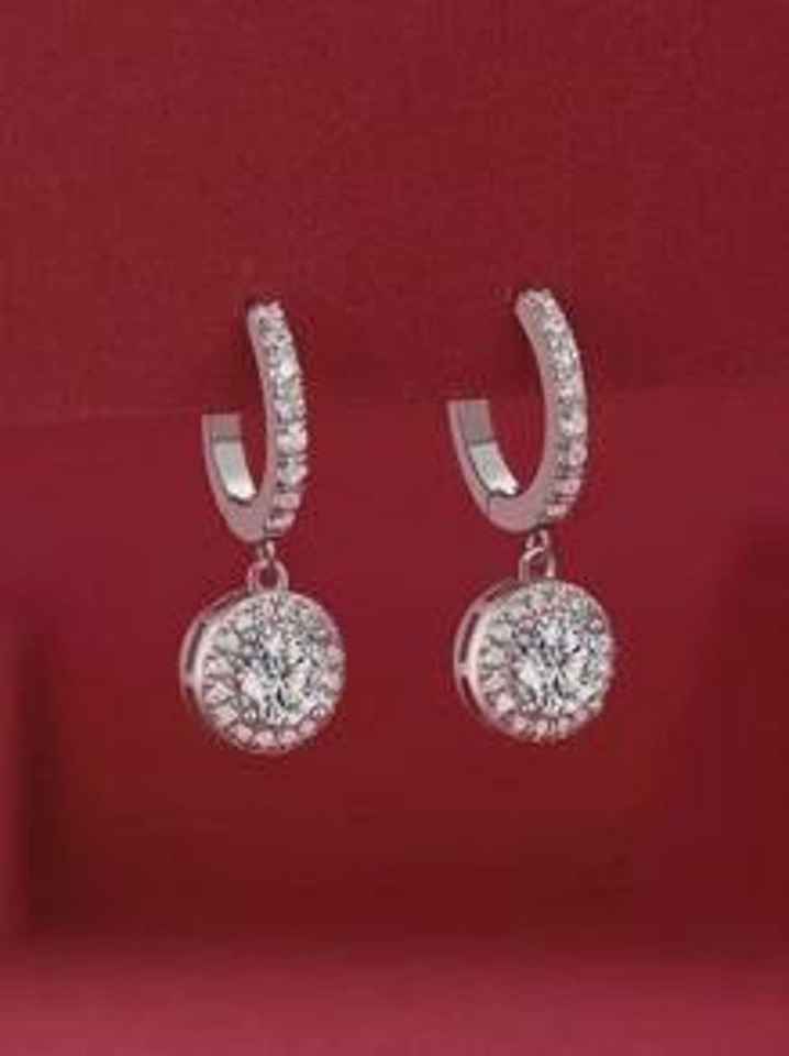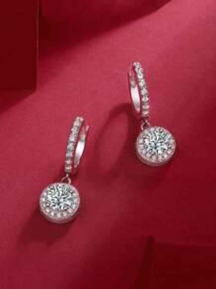 Round Cut Dangle Drop Earrings for Women New Fashion Luxury Crystal Moissanite 925 Sterling Silver Halo Diamond Earrings