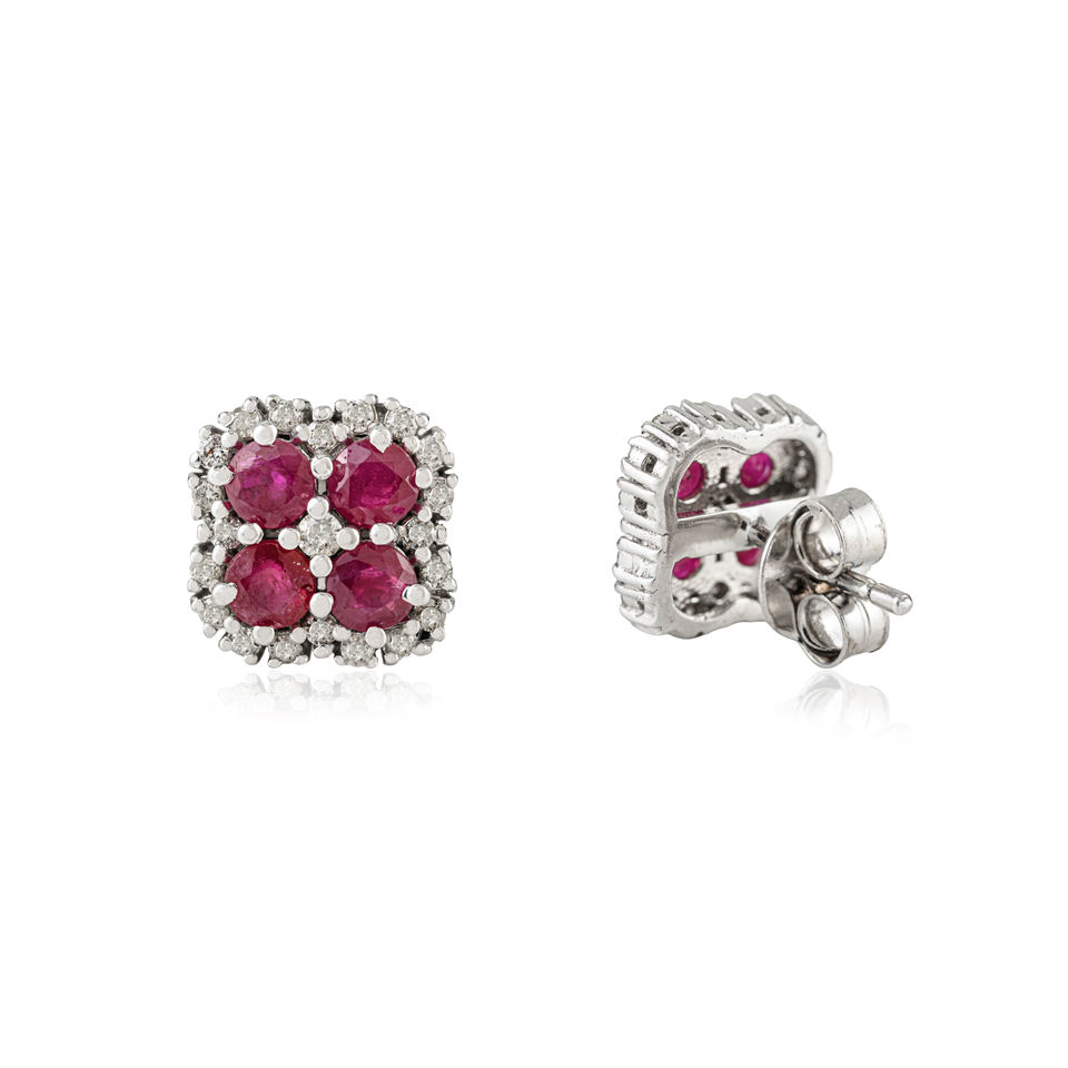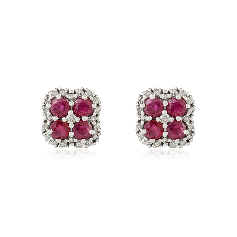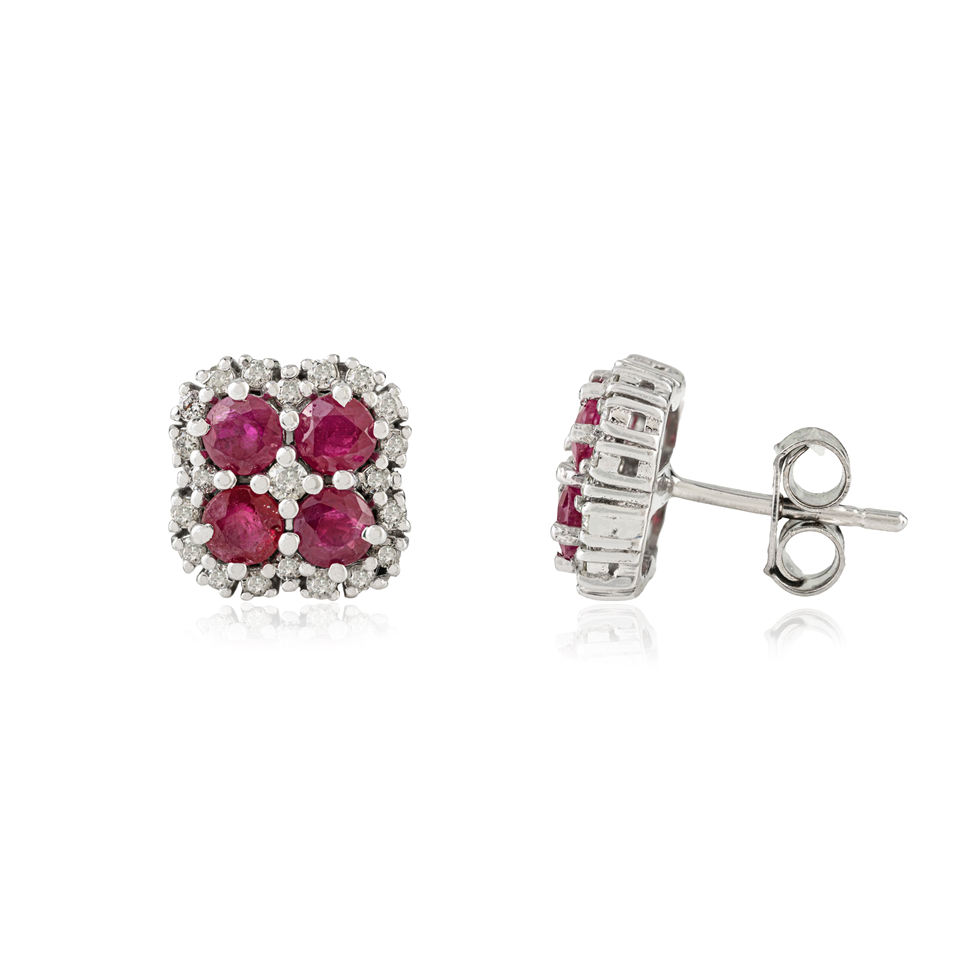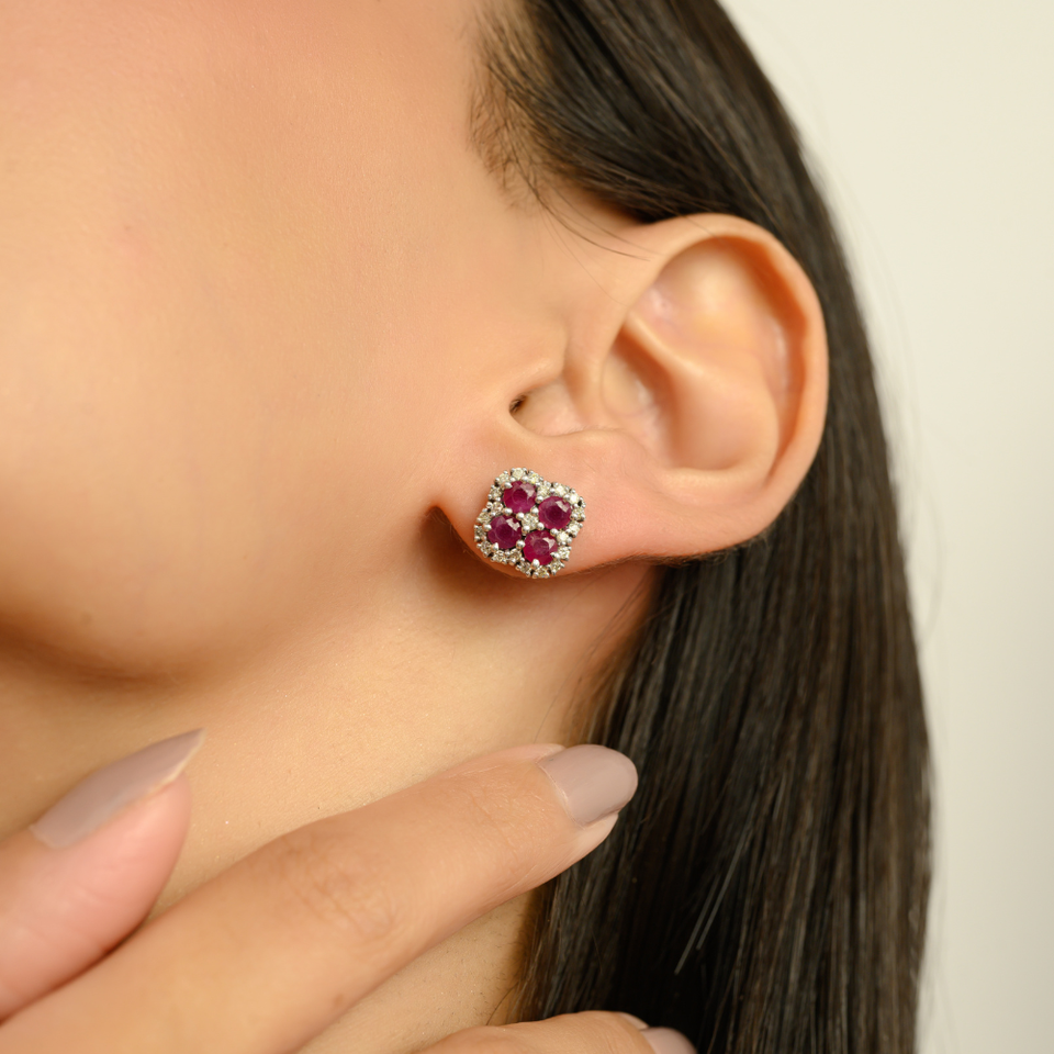 Round Cut Delicate New Floral Design Genuine Ruby Gemstone Cluster 925 Silver Fine Studs Beautiful Earrings for Women