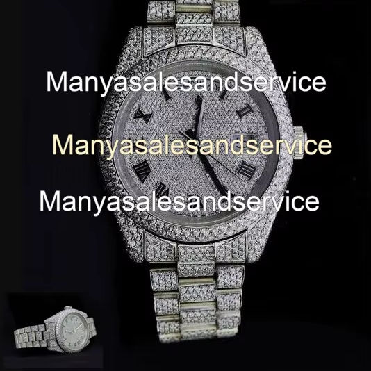 Round Cut Diamond Moissanite Watch Stainless Steel Case Glass Dial 10 Bar Water Resistant Hip Hop Style Bracelet Clasp for Men