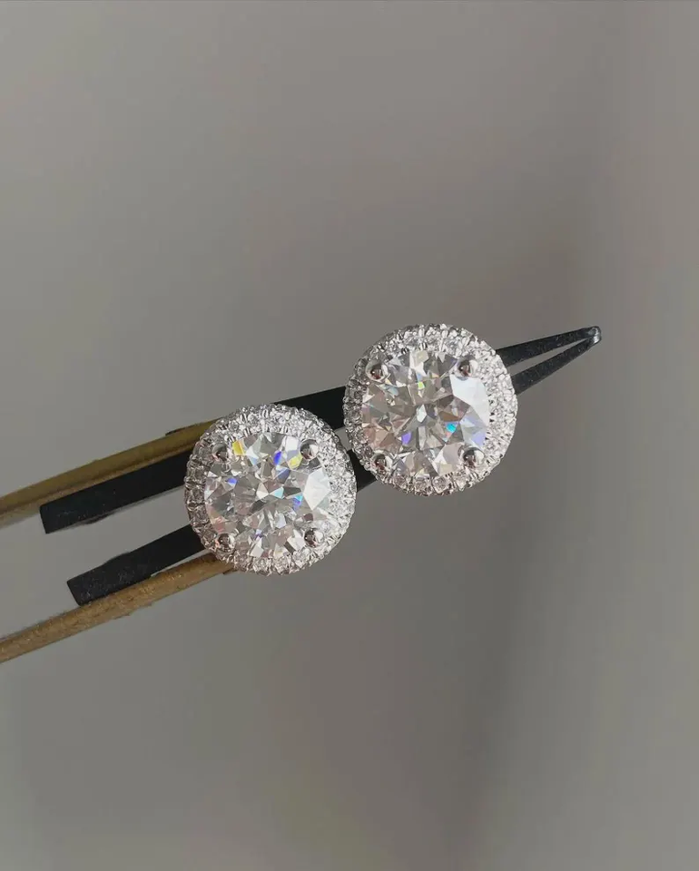Round Cut Halo Stud Earrings 925 Silver Moissanite Diamond Elegant Statement Bridal Jewelry