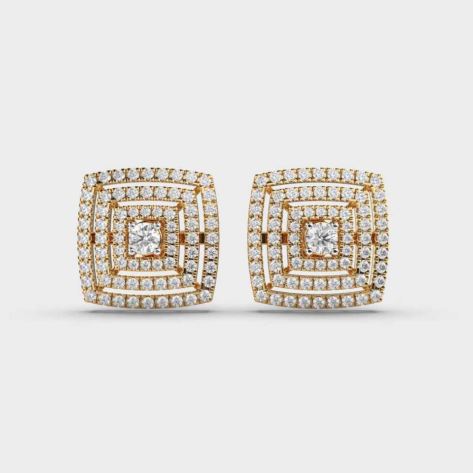 Round Cut Lab Grown Diamond Stud Earrings Square Style Engagement Wedding Earrings 14k Solid Gold Gifts for Partner