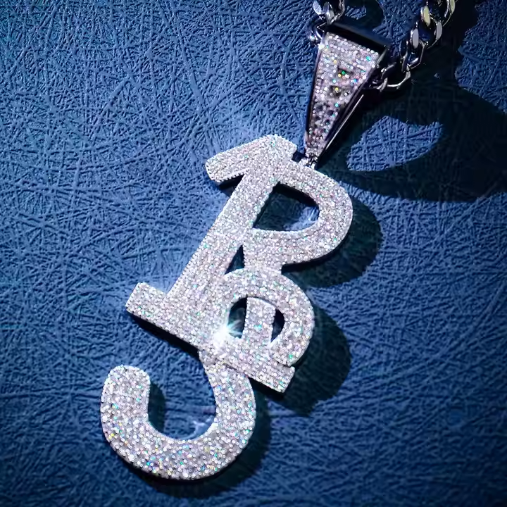 Round Cut Moissanite Diamond 2 Inch Custom Initials Men Fashion Charms & Pendant for Necklace Ice Out Chain Diamond for Men Gift