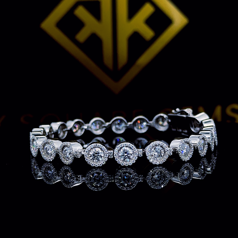 Round Cut Moissanite Diamond Bracelet D VVS1 925 Silver Customizable Name Men/Women's Fashion Charm Bracelet