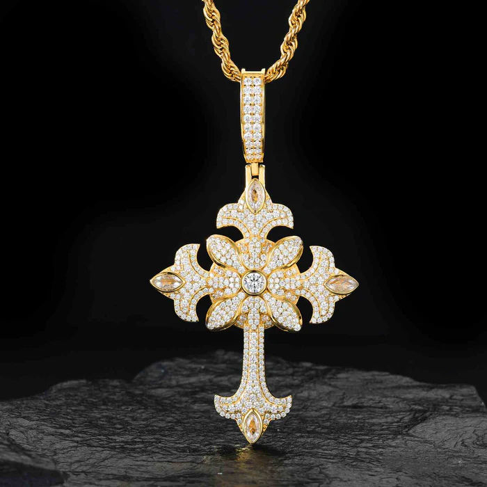 Round Cut VVS Moissanite Diamonds Jesus Cross Pendant 10K Solid Gold Necklace Unisex for Women Men