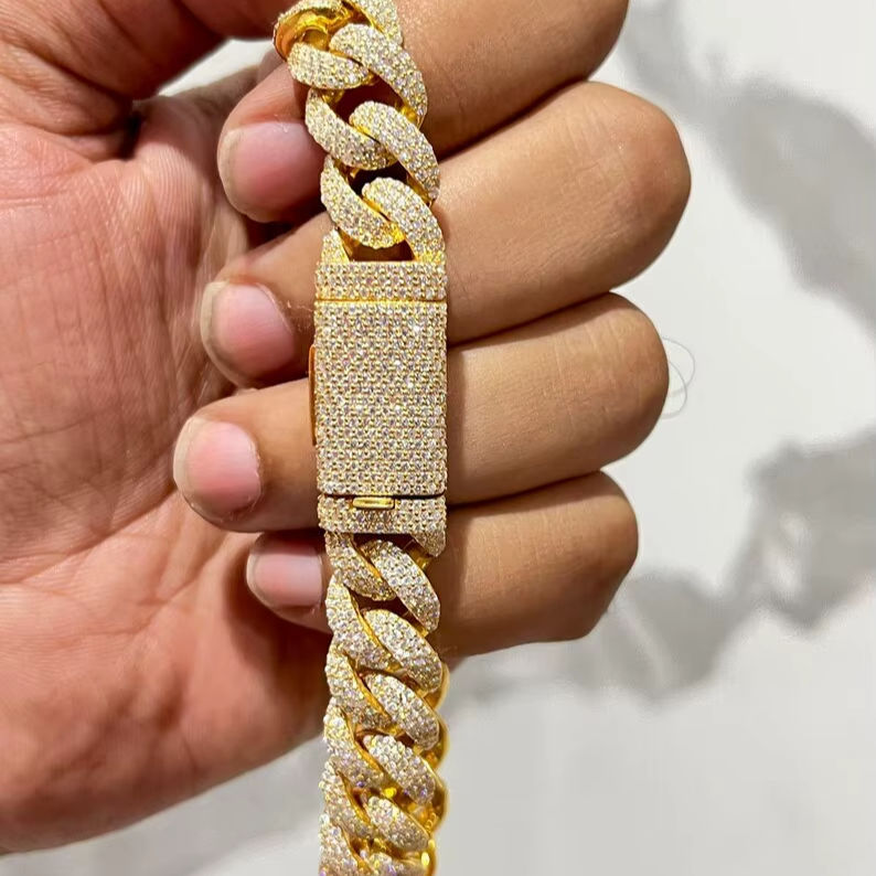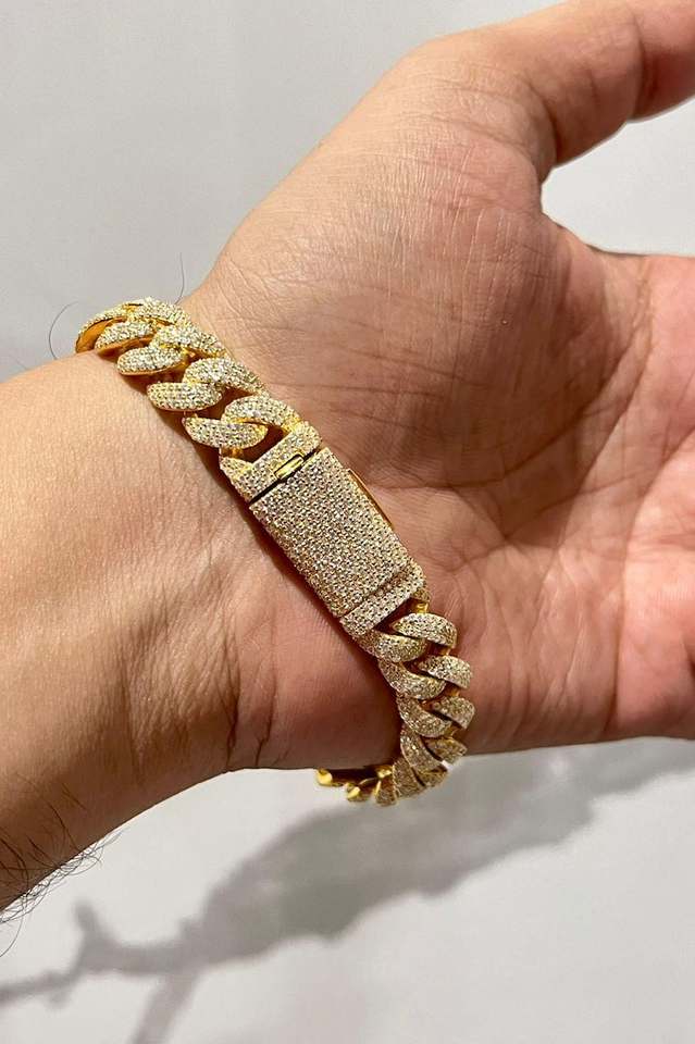 Round Diamond Moissanite Iced Cuban Bracelet For Unisex Gold Plated With 925 Sterling Silver Fine Jewelry Party Gift For Friends