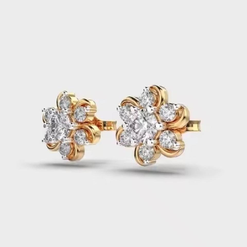 Round Diamond Studs Religious Style Religious Earrings Floral Hoop Earrings with Moissanite Stone for Weddings