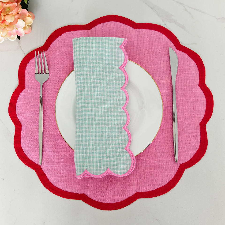 Round Double Contrast Fabric Cloth Scallop Edge Placemat 100% Linen Classic Custom Design Pattern for Home Party Wedding