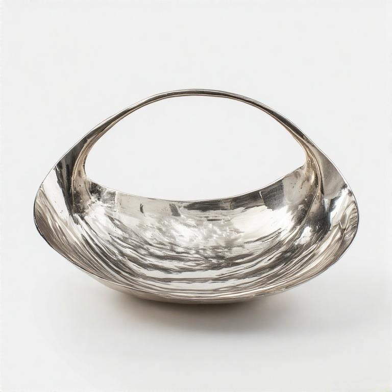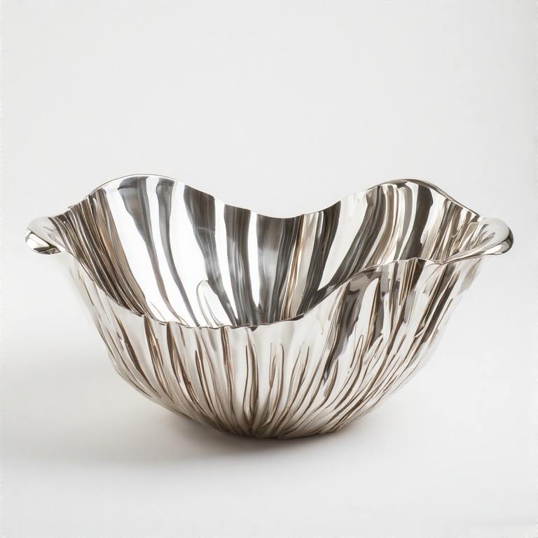 Round Fruit Bowl with Shiny Nickel Coating, Artistic Wire Weave and Flat Base for Secure and Decorative Display