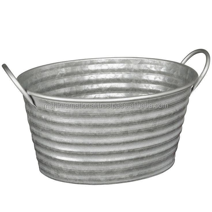 Round Galvanized Bucket, Vintage Style Metal Bucket Pots Handle for Farmhouse/Distributor of Flower Pots &Planters