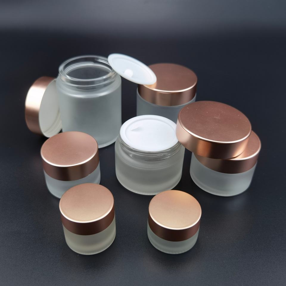 Round Glass Jar with Bamboo Wooden Rose Gold Silver Metal Lids Body Cream Jar 30ml 50ml 60ml 100ml Skincare Face Cream Pots