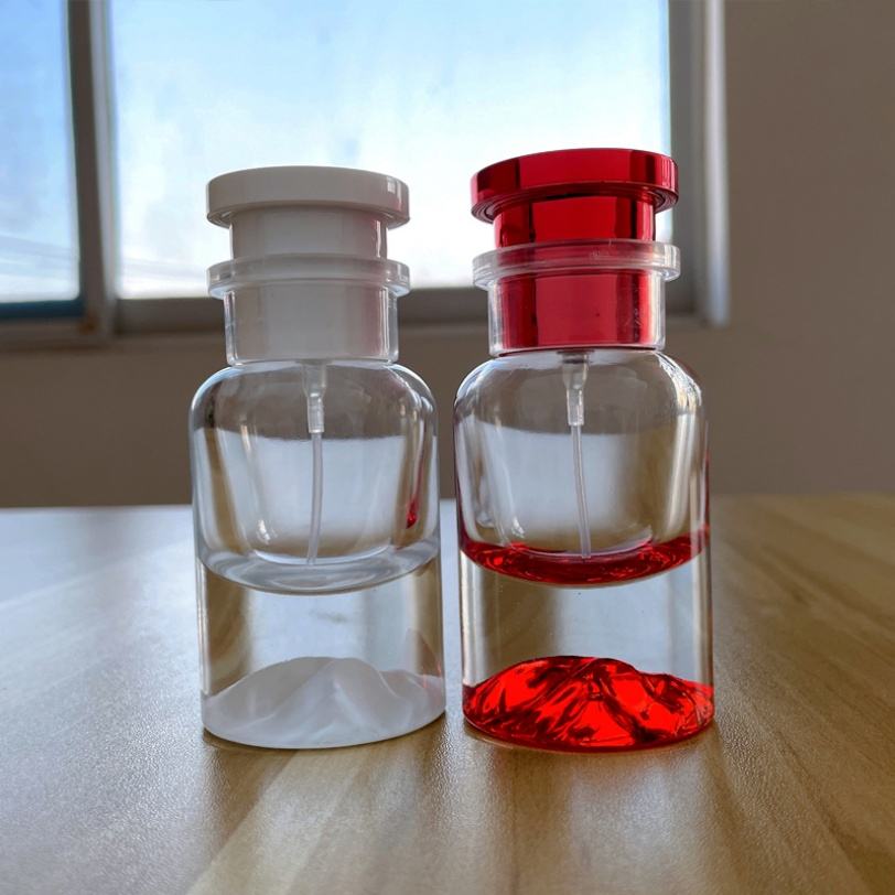 Round Glass Perfume Bottle with Green Based Bottom Flat Perfume Bottle