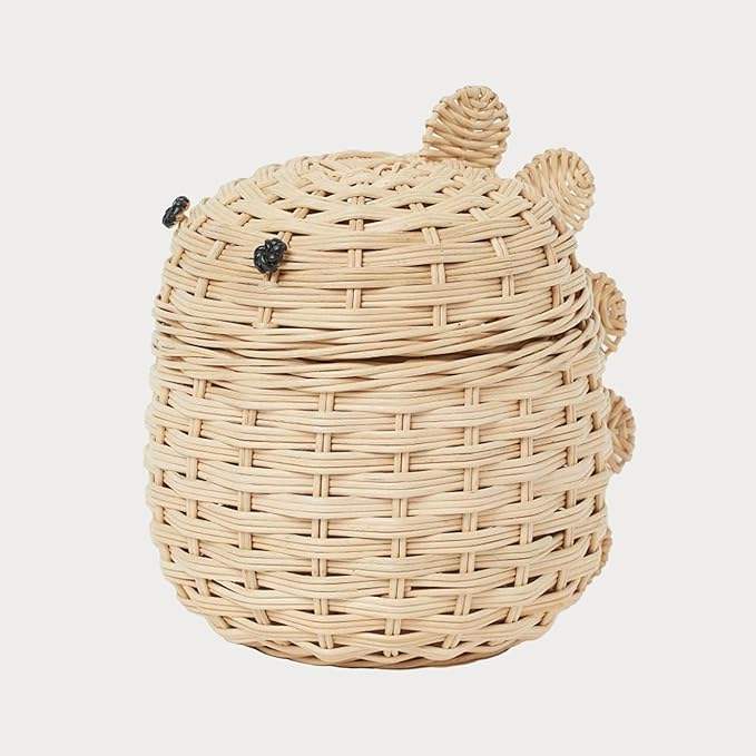 Round Handmade Animal-Shaped Rattan Storage Basket Small Wicker Bin with Lid Handles Plastic Home Decor Bin