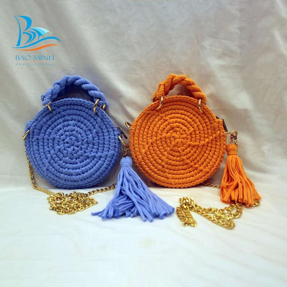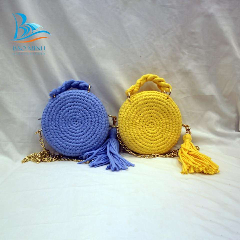Round Handmade T-shirt Yarn Bag Crochet Deluxe Clutches for Women