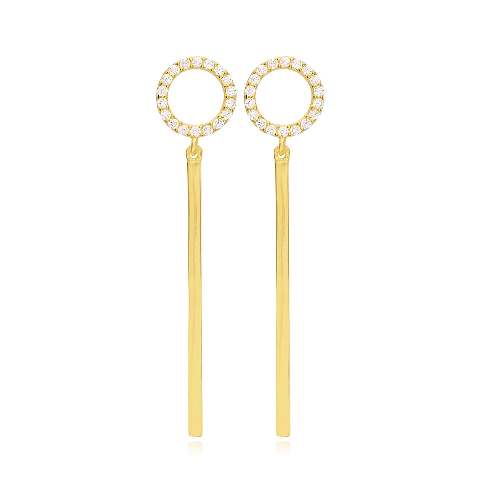 Round Hollow Stud Long Earring Plain Stick Design Turkish Wholesale 925 Sterling Silver Jewelry Handcrafted