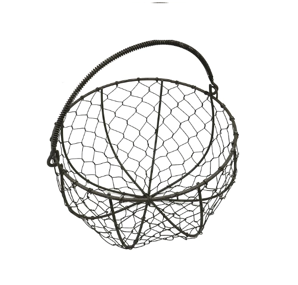 Round Iron Metal Egg Basket with Handle Eco-Friendly Multifunction Wire Gathering Basket for Food Use