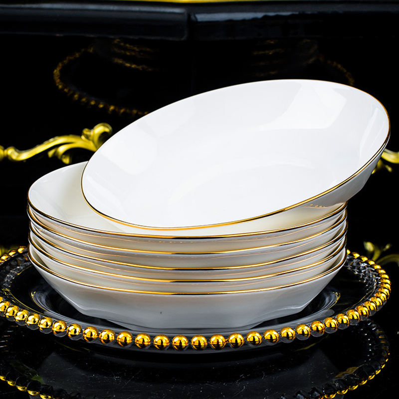 Round Irregular White Porcelain Luxury European Vintage Elegant Wedding Party Dinner Plate Bone China Ceramic Dinnerware Set