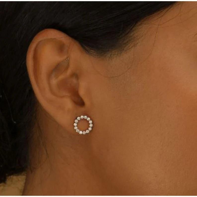 14K Yellow Gold Lab Grown Diamond Wedding Earrings Round Lab Diamond Circle Studs with Screw Back Created Diamond Jewelry