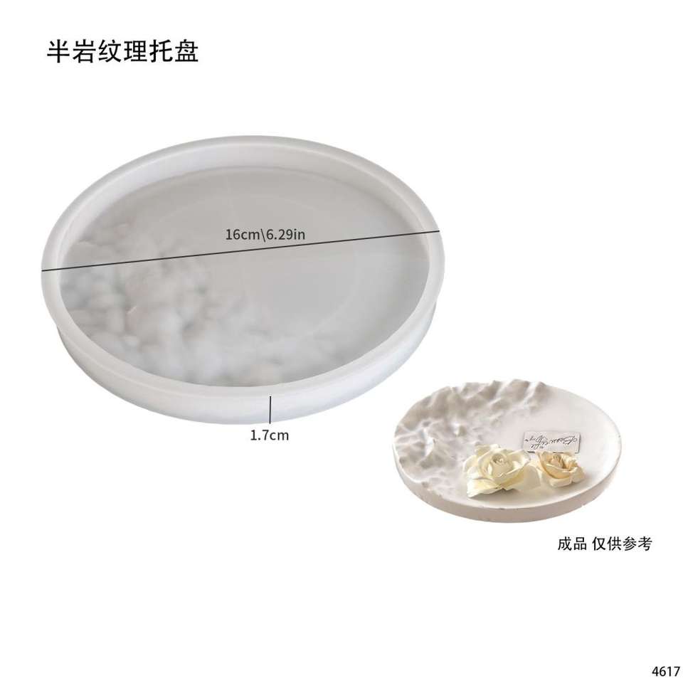 Round Large Water Wave Pattern Tray Embossed Round Dish Gypsum Resin Silicone Mold