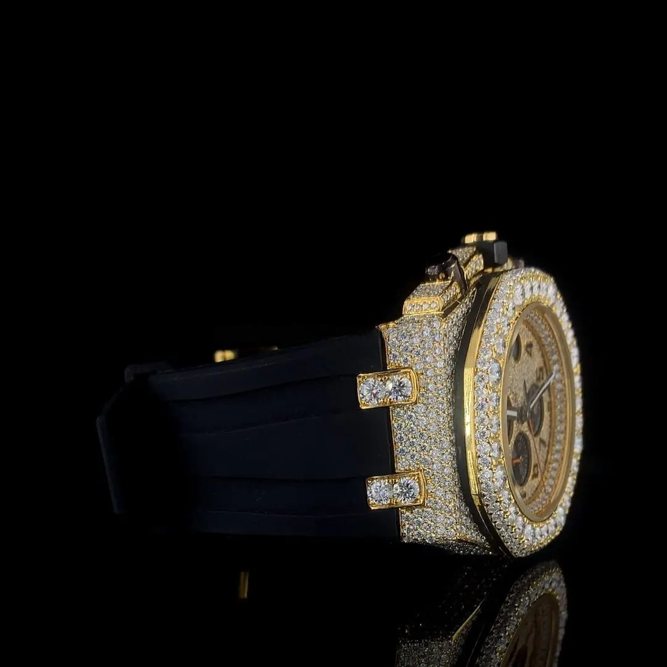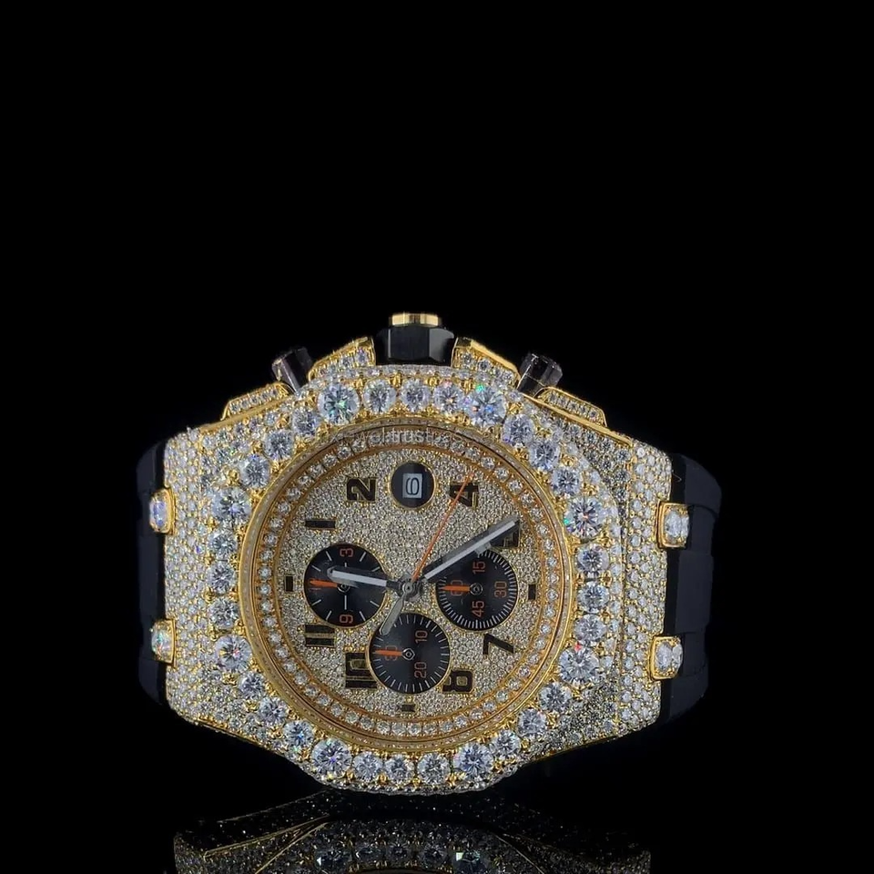 Luxury Miyota Moissanite Chronograph Watch Unisex Black High End Timepiece Charm Elegant Stylish Analog Crystal Stainless 20mm