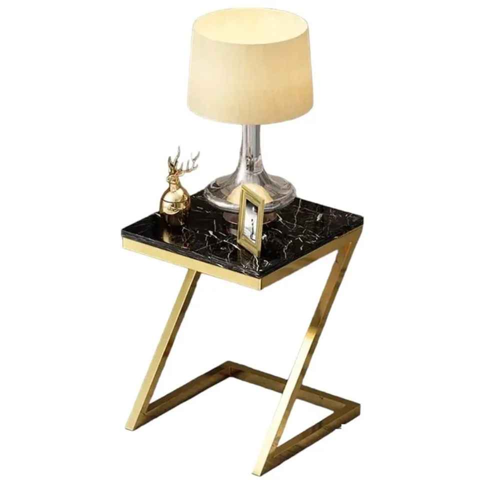 Round Marble Top Side Table Two Tier Gold Frame Modern Minimalist Handcrafted Eco Friendly Elegant Living Room Furniture