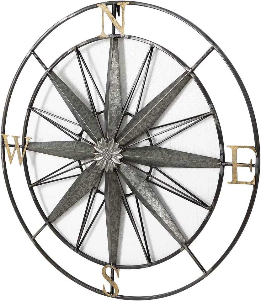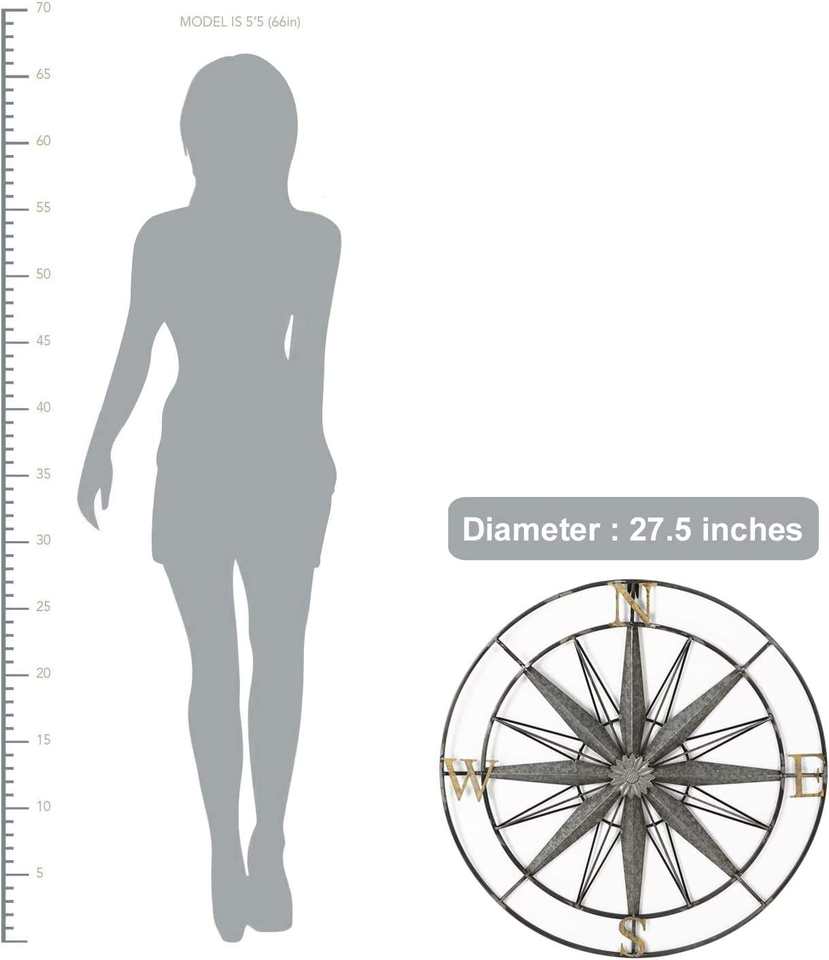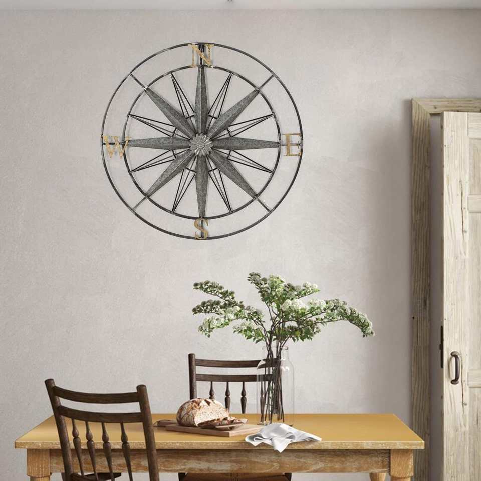 Round Metal Compass Wall Decor Nautical Hanging Wall Decoration for Home Office