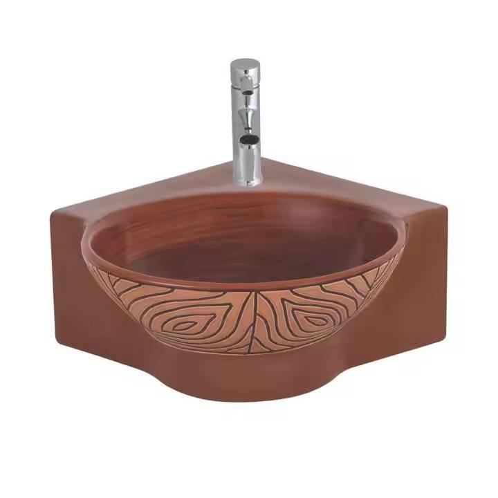 Round Modern Home Decoration Table Top Art Bathroom Porcelain Ceramic Washing Basin Wooden Bathroom Sink