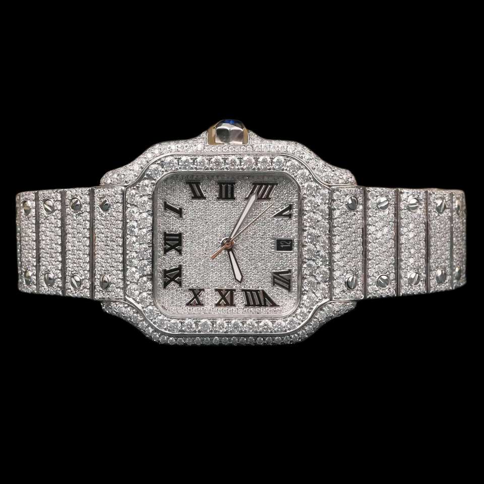 Round Moissanite Diamond Unique Mechanical Watch Luxury Antique Style with 41mm Dial ETA Movement