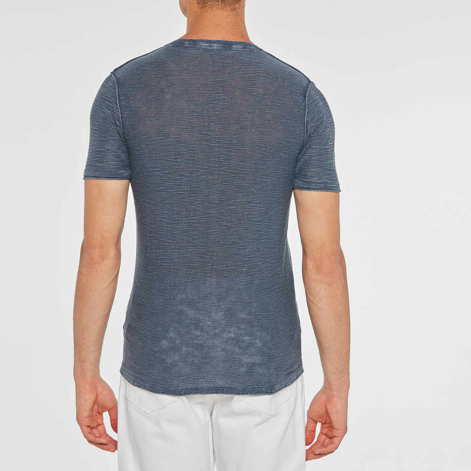 Round NECK YARN DYED 100% COTTON KNITTED PRINT ACID WASH CENTRAL OPENING BUTTON MEN'S T-SHIRT