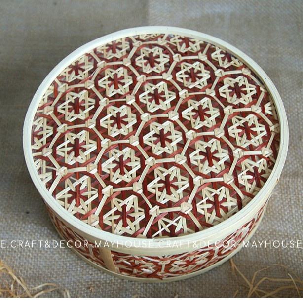 Round Natural Bamboo Mooncake Box Storage Basket Boxers Gift Set Mid Autumn Festival Wicker Gift Baskets Vietnam Handicraft