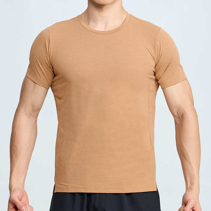 Round Neck Bottom Side Split Elastic Custom Logo Casual Shirt Tshirt for Men Plain Tshirt