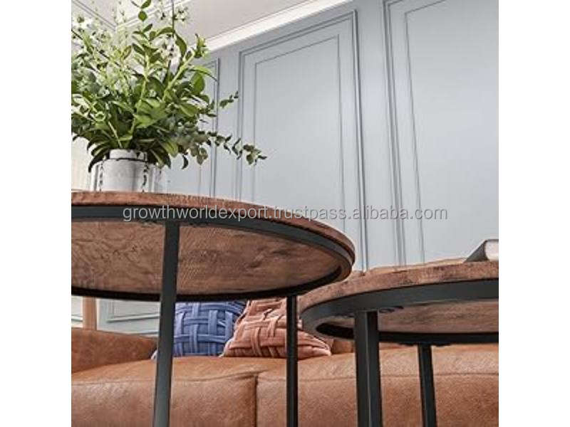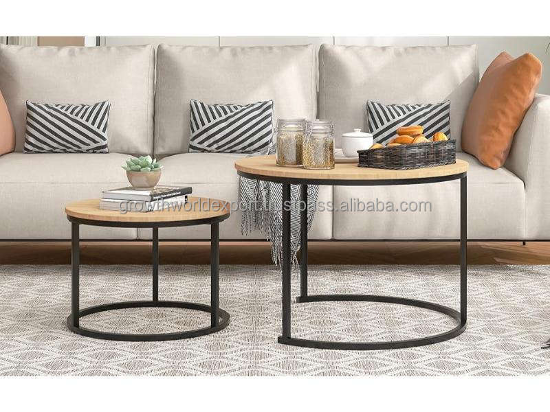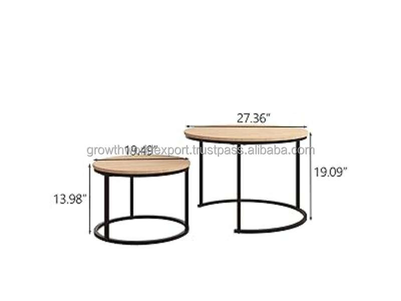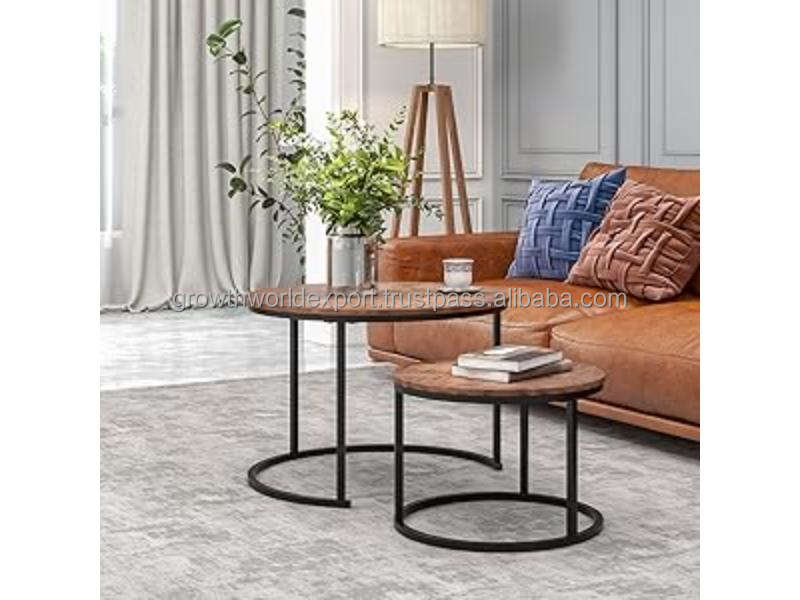Round Nesting Coffee Table Set of 2 Modern Design Living Room Use Mango Wood Top 1-3 Year Warranty