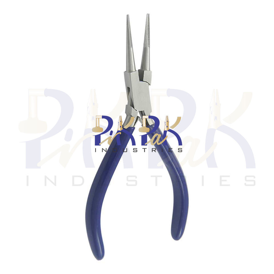140mm Long Nose Plier Serrated Jaws Double Leaf Spring PVC Handles for Crimping Fishing Jewelry Making DIY Crafts for Circlip