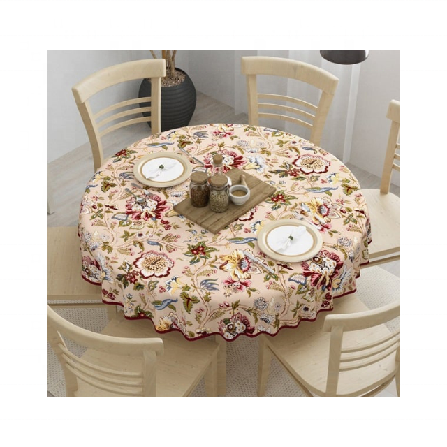 Round Organic Cotton Jacquard Woven Table Cloth 300 TC Sustainable Texture Soft Wash Fabric For Elegant Dining Table Decor