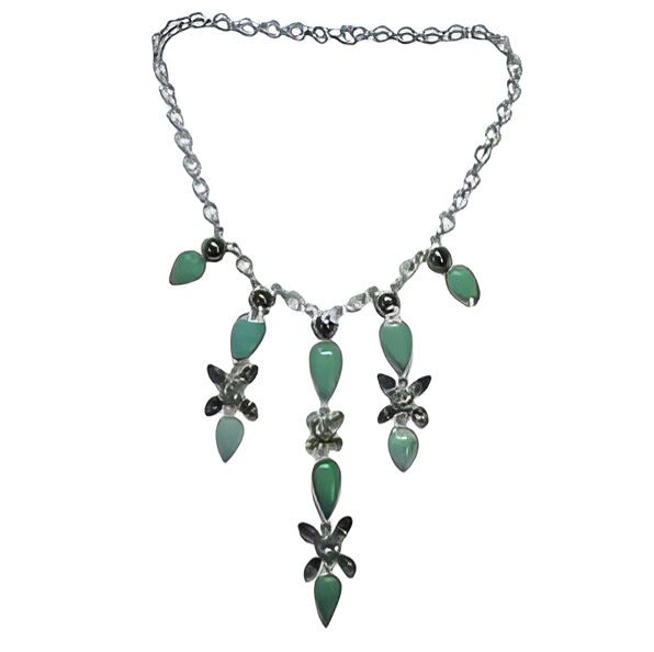 Round, Pear Shape Green Onyx, Black Onyx Gemstone Necklace 925 Sterling Silver Classic Fashionable Necklace for Gift, Party