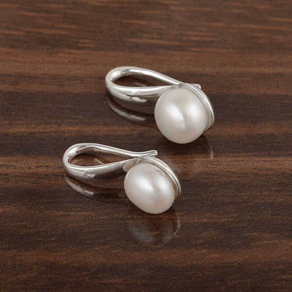 925 Sterling Silver Freshwater Pearl Hoop Earrings Handmade Trendy Jewelry Gold Plating Anniversary Gift for Women Party Outfit