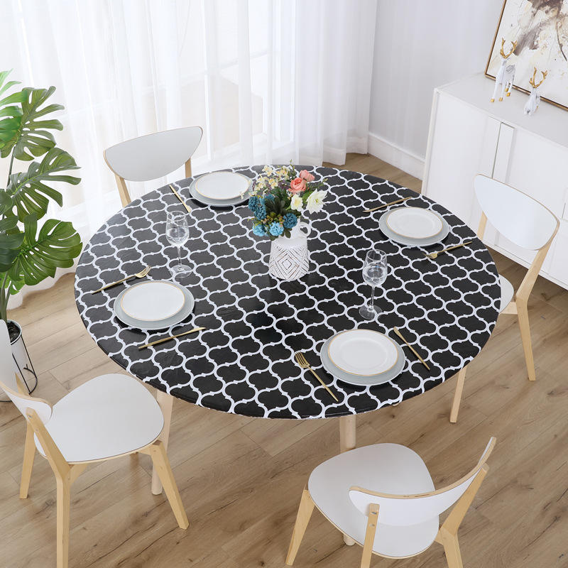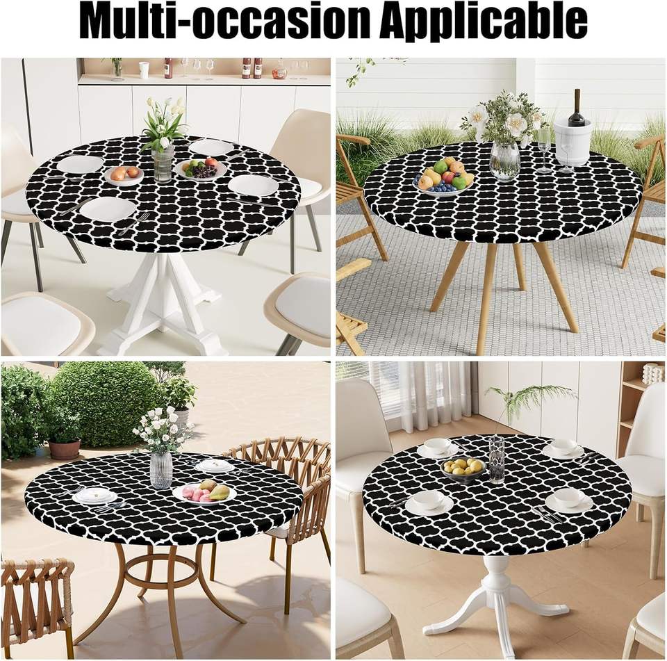 Round Picnic Tablecloth, Elastic Waterproof Fitted Vinyl Tablecloths Wipeable Flannel Backed Vinyl Tablecloths for Camping